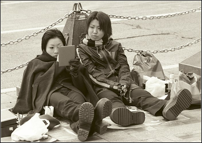 Девушки красятся повсюду. Сидя...